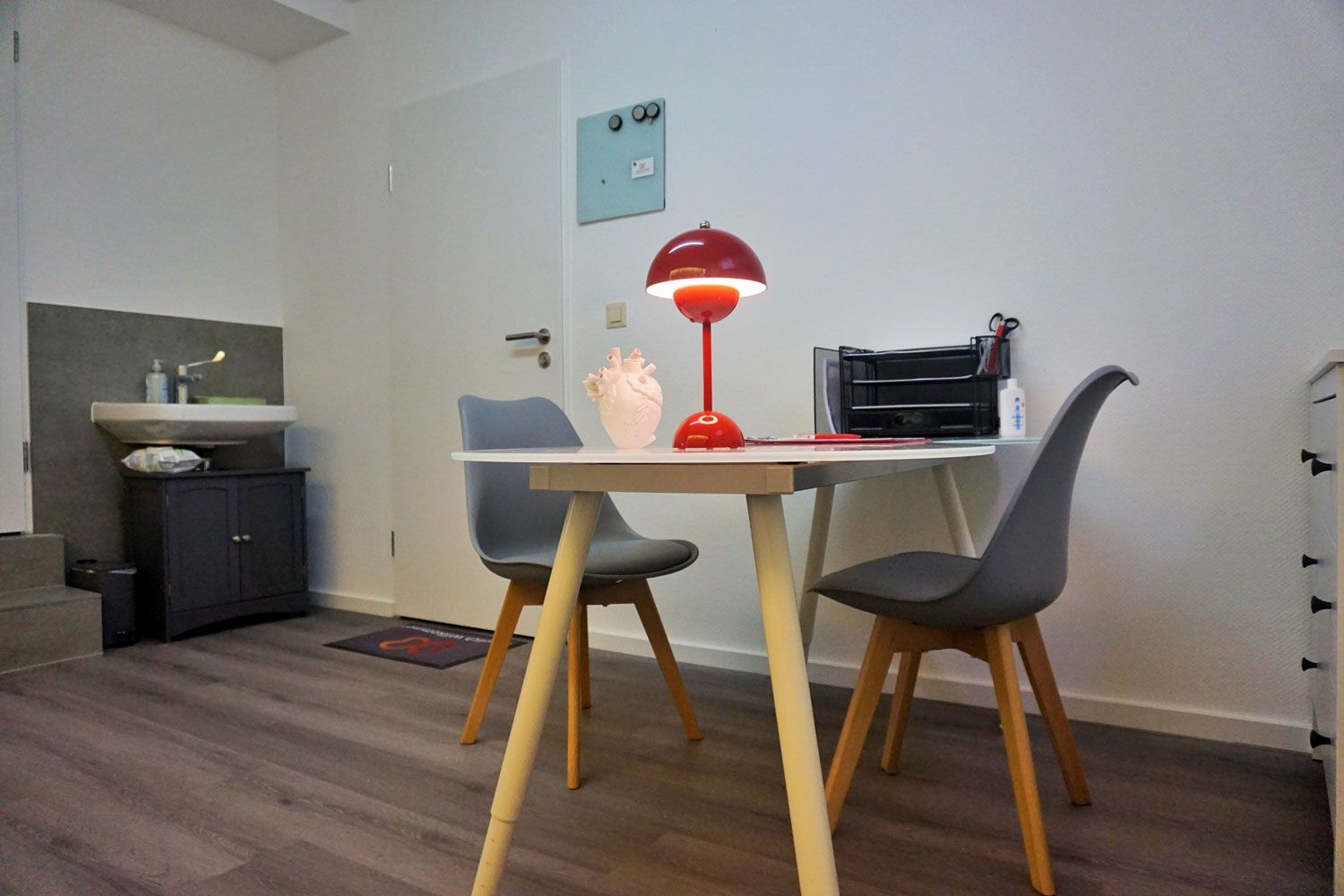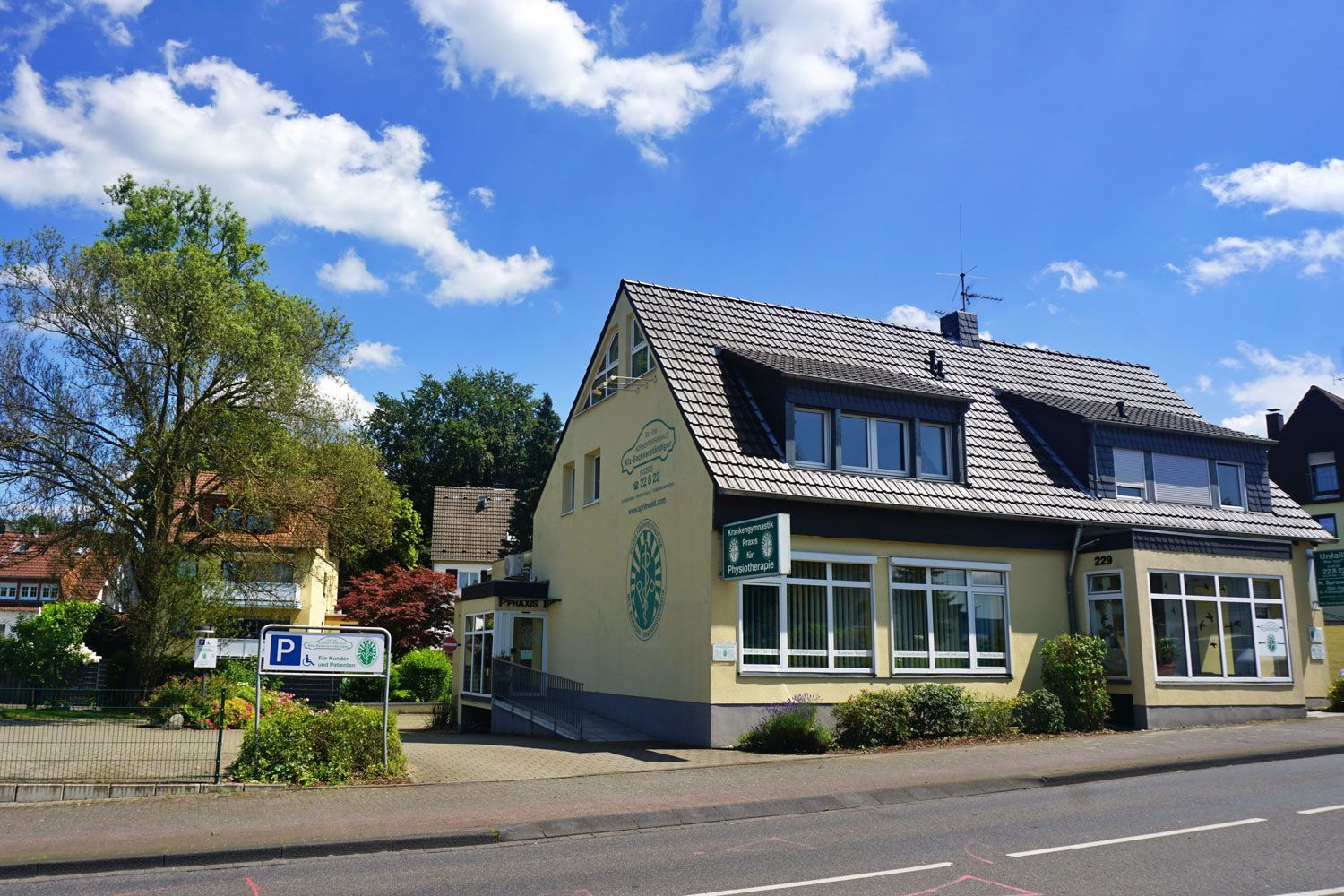 Es gibt 2 kostenlose Parkplätze auf dem Gelände. Die Praxis befindet sich im Souterrain, es gibt keinen Aufzug.